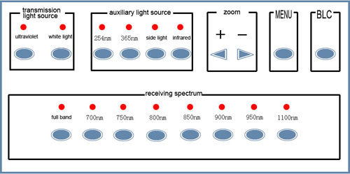 當(dāng)要重現(xiàn)某些被涂改、覆蓋文字、圖形原來(lái)形象時(shí),按動(dòng)接收波段選擇按鈕,選擇合適波長(zhǎng)的波片,這樣可以獲得很好的紅外效果。