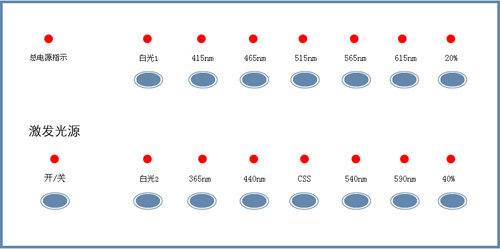 激發(fā)多波段光源(15種):254 nm; 365 nm; 415 nm; 440 nm; 465 nm; 515 nm; 540 nm; 565 nm; 590 nm; 615 nm; CSS; 20%白光; 40%白光; 白光; 紅外光。